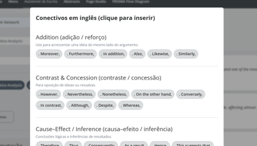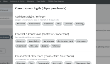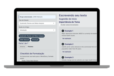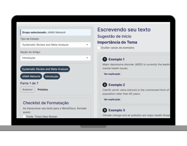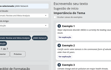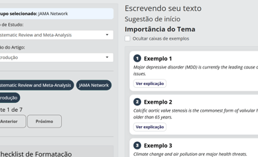 O Assistente de Escrita adaptará seu estilo conforme sua escolha de Grupo Editorial, oferecendo exemplos ao longo de cada seção